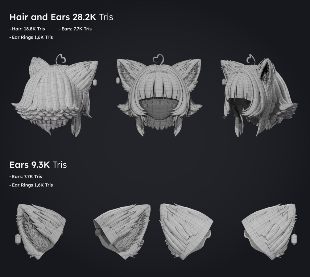 - 1 FBX (Hair, Ears, and tail with acc.)