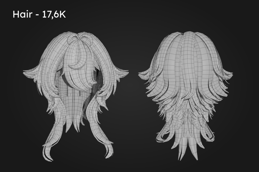 The showcase model is NOT included. Each package only contains the specific items listed in its description (e.g., Hair, Ears & Tail, Tattoo, or Full Bundle). No additional assets beyond those stated are included.